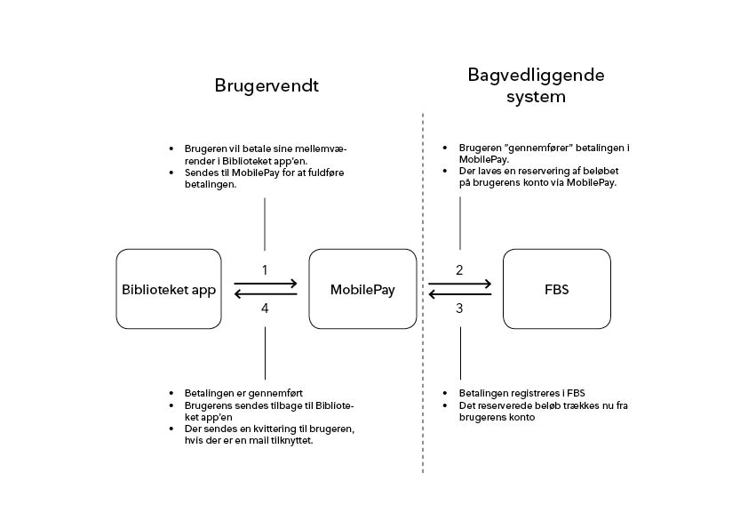 Før at MobilePay gennemfører en betaling, skal den først registreres i FBS (Fælles Bibliotekssystem). På den måde sikrer vi, at betalingen ikke går igennem, før den er registreret i systemet. Det er derfor at beløbet "reserveres".